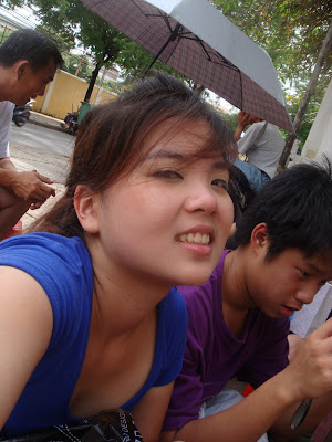 The ladies! :) Nice nice nice. I like. We went to the beach after that. Me and my coussie trying hard to open up the big umbrella as it was raining.